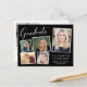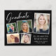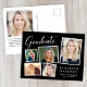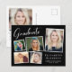 Modern black graduation announcement postcard with a collage of 5 scattered photos in white frames, "Graduate" in a stylish white script, the grad's name in elegant white typography and their school and class year in simple white typography.