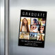 Elegant magnetic keepsake black graduation announcement to celebrate the graduate featuring "GRADUATE" across the top in large white typography, a seven photo collage and his or her name, class year and school in modern white typography.