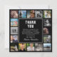 Un carte de remerciements funéraire / mémorial très spécial mais moderne à envoyer à la famille et aux amis qui vous ont montré l'amour, les amitiés et le soutien pendant votre temps de douleur. Avec 16 photos carrés de la vie de vos proches, et un simple modèle de message de remerciement qui peut être facilement personnalisé sur un arrière - plan noir qui peut être changé à n'importe quelle couleur. Au verso se trouve une grande photographie de votre membre de la famille qui a tristement passé, une superposition avec leur nom et les dates de vie dans la typographie blanche.