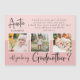 Modern photo collage Godmother proposal card. Design features 3 photos of the baby, typography script, will you be my Godmother on a pink and pastel blush pink background.