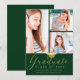 Modern Photo Collage Gold Script Green Graduation Announcement