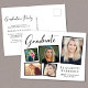 Modern graduation party invitation postcard featuring a five photo collage of scattered pictures in frames, "Graduate" in a stylish script, the grad's name in elegant typography and their school and class year in simple typography. Add your party details on the back.