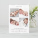 Modern simple sleek birth announcement card with 4 photos on a grid with modern grey typography.