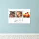 This stunning canvas wall art features a beautiful three-frame photo collage showcasing cherished memories, adorned with the heartfelt message, "Home Sweet Home." The elegant black and white design, combined with exquisite script and print typography, creates a sophisticated and enduring piece that will complement any interior style. Personalize it with your family name. Created by Simply Farmhouse Press.