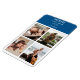 Introducing our Custom Photo Collage Magnet, where you curate a unique timepiece to complement your decor. This design showcases a sleek grid-style collage, accommodating four cherished photos, your name, and an inspiring slogan. Insert your images clockwise from the top left effortlessly, thanks to the thoughtfully arranged template. Against a sophisticated blue backdrop with crisp white lettering, this magnet exudes timeless elegance. Transform your space with our personalized magnet and showcase your memories in style!