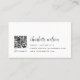 Chic and elegant business cards for photographers feature eight of your best photos arranged in a collage layout, bisected by your name or business name in modern lettering. Add your full contact details to the back, along with a customizable QR code, in soft off-black on a crisp white background.