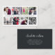 Chic and elegant business cards for photographers feature seven of your best photos arranged in a collage layout, bisected by your name or business name in modern lettering, with a customizable QR code. Add your full contact details to the back in crisp white on a soft off-black background.