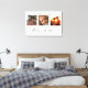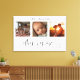 This stunning canvas wall art features a beautiful three-frame photo collage showcasing cherished memories, adorned with the heartfelt message, "This Is Us. Our Life. Our Story. Our Home." The elegant black and white design, combined with exquisite script and print typography, creates a sophisticated and enduring piece that will complement any interior style. Personalize it with your family name. Created by Simply Farmhouse Press.