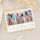 These Modern Photo Collage Wedding Foil Thank You Cards offer a stylish way to express your gratitude after your wedding. Designed with a clean layout featuring three photo slots, they beautifully showcase your favourite memories from the special day. The elegant foil accents add a luxurious touch, while the modern typography keeps the design fresh and timeless. Perfect for newlyweds who want to send heartfelt thanks with a personal and elegant touch.