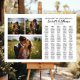 Elegant wedding seating chart featuring a simple design with a photo collage of 3 photos. Just edit the tables and names. Available in printed format or as downloadable file.