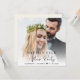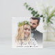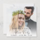 Modern light cream elopement or small wedding announcement and reception invitation. The front features your wedding day photo overlayed with "Happily Ever After Party" in a mix of simple typography and a chic script. Under your photo, add your first names and wedding date. On the back, personalize your message, add party or reception details and add your names in a signature-like script.