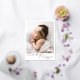 Simple newborn birth announcement postcard with "thank you" in a modern script along with baby's name and birth date below your favourite photo. All text on the front is in real rose gold foil. The back has a second picture along with your personal message. This elegant birth announcement is a great way to announce the birth of your new baby girl.