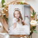 Personalized Modern Photo Girl First Holy Communion Rose Gold Foil Invitation.