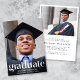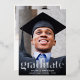 An elegant and stylish graduation announcement and party invitation that features your grad's photo overlayed with "Graduate" written in a trendy large type in real silver foil and his or her name, school and class year. Add another photo and the party details on the back.