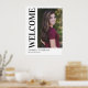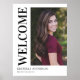 Minimalist graduation welcome poster featuring a simple white background, a large photo of the graduate, and a formal elegant text template that is easy to personalize.