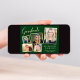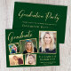 Modern green graduation party invitation featuring a five photo collage of scattered pictures in gold frames, "Graduate" in a chic gold script, the grad's name in elegant typography and their school and class year in simple typography. Personalize your party details on the back.