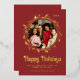 Modern Photo Happy Holidays Script Wreath Foil Holiday Card