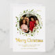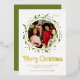 Modern Photo Merry Christmas Script Wreath Foil Holiday Card