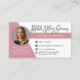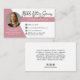 Modern, trendy Notary photo business card features single photo, contact details on a rose gold and white background. Personalize further with your services and social media on the back.