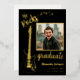 Celebrate your graduate son with a cool “He Rocks” modern black and gold foil graduation party invitation, featuring minimalist gold line art electric guitar artwork. The design showcases a cool electric guitar line art in gold foil capturing a fun, energetic vibe. Accented with gold foil and black calligraphy and musical notes, it perfectly reflects the excitement of the occasion. The front highlights your son’s name and graduation details in contemporary gold foil typography, while the back offers space for additional grad information. An easy-to-use photo template lets you add a cherished image, making it a personal keepsake. Designed by artist Catherine Sweetman, this card blends artistic flair and modern elegance, making it the perfect way to celebrate his milestone in style.