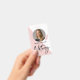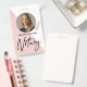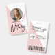 Modern, trendy Notary photo badge features single photo, contact details on a rose gold and blush pink background. Personalize further with your details and logo.