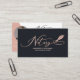 Modern, trendy Notary photo business card features rose gold typography script ''notary'' on the front, single photo, contact details on a rose gold and white background. Personalize further with your services and social media on the back.