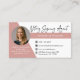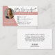 Modern, trendy Notary photo business card features single photo, contact details on a rose gold and white background. Personalize further with your services and social media on the back.