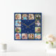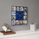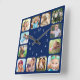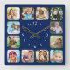 Modern personalized keepsake wall clock with simple clean lines featuring white numbers on a navy blue background and twelve rounded squares holding your favourite photos of family, pets, travels or other special memories.
