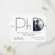 A modern photo PhD graduation party invitation postcard with a black and white scheme. Celebrate your being PhDone with this stylish invitation. Simply add your photo & information, add this invitation to your cart, and celebrate this major accomplishment.