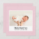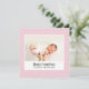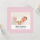 Baby girl birth announcement square card personalized with a photo, their name, birth stats, and a custom message on the back. Pink design with a modern chequered pattern background.
