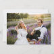 The left-hand edge of this elegant modern wedding invitation features a purple watercolor agate border trimmed with faux gold glitter. The customizable text combines charcoal grey handwriting, copperplate and italic fonts on a blush pink background. Easily replace the sample image on the back with your own horizontal photo.