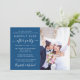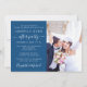 Classic blue elopement or private wedding announcement and reception invitation with your photo and "Happily Ever After Party" in modern white typography and a stylish white script with swashes. Add your reception details and your names in a signature-like script. On the back, input your wedding website URL address to create a QR code for guests to scan for all the details and to rsvp online.