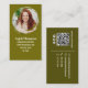 Make a polished first impression with this modern professional business card in green minimalist style—perfect for independent contractors and freelancers. Designed with space for your photo, QR code, and social media links, it’s a simple yet powerful way to promote your business website. The clean, elegant design combines sophistication and functionality, helping you connect and network with confidence.