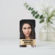 Professional chic business card with your photo overlayed by a brushed gold faux metallic strip and your profession and name in minimal modern typography. On the back, personalize your contact information and input your website address to create a scannable QR Code for customers and clients to easily access your online platform.