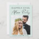 Modern mint green private wedding or elopement announcement and reception invitation that features your photo, "Happily Ever After Party" in simple typography and a chic script and your names and wedding date. On the reverse side, customize your announcement and invitation, input the address of your wedding website to create a QR code for guests to scan for all the details and to RSVP online, and add your names in a signature-like script.
