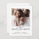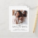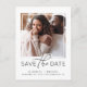 Simple save the date announcement postcard that features your photo with a square frame cut out and minimal modern typography with a touch of an elegant script. Personalize with your first names, wedding date and location. On the reverse, customize your save the date details and add your names in a signature-like script.