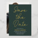 Modern Photo Save The Date Dark Green Real Gold