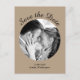 Your favourite engagement photo takes centre stage on this simple and elegant Save the Date, accented in a modern circle on a beige background with black type. This Save the Date is easy to customize with your own photo and wedding information; however, if you need help changing the colour of type or anything else, just contact us at prettyfancyinvites@gmail.com.