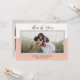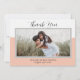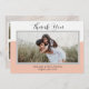 .: This design features a gorgeous, minimalist pink and white background, hand-script font and a place to add photos front-and-back.