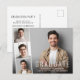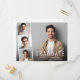 Minimal modern graduation announcement and party invitation postcard featuring the graduate's photo overlayed with a strip of three smaller square photos and "Graduate," their name, school and class year in simple white typography. On the reverse side, add the party details.