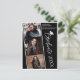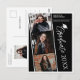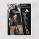 The Modern Photo Strips Black Graduation Announcement Postcard is a modern mix elegant design. With a black colour scheme, it features photo collage film strips, a graduation hat, and stylish calligraphy. The card captures the essence of graduation, symbolizing success and celebration. The film strips evoke nostalgia, showcasing essence of the graduate's joy. The graduation hat adds tradition, while the calligraphy adds a personal touch. This visually striking card appeals to graduates and their families, serving as a cherished keepsake. Its modern design and thematic elements make it a fitting tribute to the graduate's accomplishments.