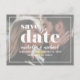 This design features a modern simple photo picture minimal, with a vellum photo transparent overlay, and a budget-friendly postcard template. a minimalist engaged engagement couple, a creative stylish trendy typography, a white bold text font overlay, a clean simplistic simple trendy, sleek contemporary modern style, a classic traditional whimsical fun, a vertical classic landscape photo, a modern typography design, a one photo collage template