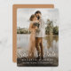 Announce the exciting details of your wedding day with our elegant Save the Date Invitations. Our modern design showcases a stunning vertical photo that extends to the edges, The white text overlay adds a touch of sophistication, beautifully complementing the image of the happy couple.Choose from a variety of paper shapes and sizes to tailor the invitation to your preferences. The versatile design tool allows you to further personalize this photo save the date template, enabling you to make additional modifications that suit your style and preferences, The coloured back in a warm brown hue adds a refined touch, elevating the overall look and feel of the invitation.