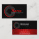© 2012 Socialite Designs. Modern photographer business card with shutter design and red swirl. The shutter design element can be moved and resized on the business card. Choose a different background colour and font style to suit your business.