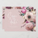 Modern photographic floral wedding save the date. In purples, pinks, browns and green. Modern take on rustic wedding with script handwriting.