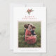 A modern minimalist holiday photo greeting card with plenty of white space, featuring a watercolor pine tree branch with pine cones and red berries. Personalize with your favourite photo and editable headline and sign off. Add an optional message to the reverse in white text on a dark green background.