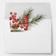 Modern Pine Branch Holiday envelope with a watercolor illustration of a pine tree branch with pine cones and red berries on the back flap and your return address. Inside is a surprise large scale version of the rustic pine branch.