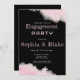 The words "party", "engagement" and the couple's names are highlighted in a playful bubble letter font that perfectly matches the pink watercolor gradients. This attention to detail makes the invitation truly unique and special. The combination of the bold black and the soft pink creates a beautiful contrast that is sure to impress all of your guests.