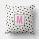 Modern Pink and Black Polka Dot Monogram Dorm Room Throw Pillow