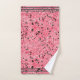 Modern Towel Set Terrazzo Floor (Pink and Black). Funky towel set in the traditional terrazzo flooring pattern. Trimmed with charcoal at top and bottom of towels and washcloth. Perfectly pink plus black and white add up to a winner in your guest bath, as a gift set, or just to treat yourself.